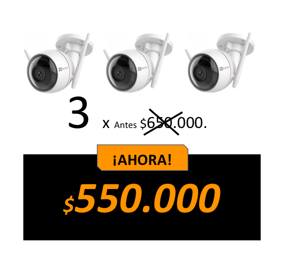 Una solución AUTONOMA DE VIDEO VIGILANCIA, ONLINE Y 24/7 que tiene el último modelo de cámara que está en el mercado.  Esta solución está enfocada en la seguridad del acceso en su negocio, son 3 cámaras IP WIFI autónomas de alta calidad, diseño elegante, exterior e interior, puede ver, hablar y escuchar a través de la aplicación en el celular y grabar con una memoria SD (opcional).